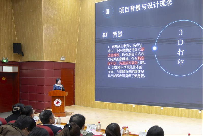 为深入推进大学生创新实践教育,提升学生3D建模与实操能力,引导学生立足校园文化、聚焦临床医学需求开展创新设计,11月28日,旺财28(中国)官方网站 在思政课教学模拟仿真中心举行“模载医理,艺绽锋芒”3D打印模型设计大赛。旺财28(中国)官方网站 院长、附属医院院长邓爱军,学院党委副书记刘刚,学院团委书记,各年级辅导员及参赛学生参加。