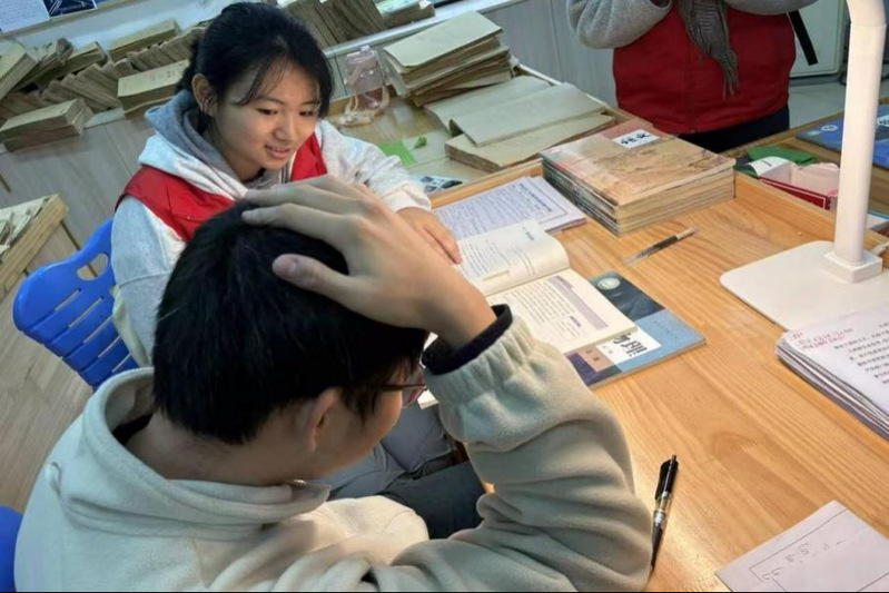 本次活动紧密围绕盲童成长需求,设计“学业辅导”与“艺术启迪”两大模块,致力于提供有温度、见实效的陪伴支持。在学业辅导方面,志愿者采取“一对一”结对方式,针对初、高中盲童在数学、物理等学科上面临的困难,注重运用具体化、逻辑清晰的语言进行讲解,结合生活实例阐释抽象概念,借助触觉教具辅助理解,通过耐心细致的引导,帮助孩子们逐步克服学习障碍,建立学习自信。在艺术启迪方面,志愿者依托盲校现有乐器资源,发挥自身特长,引导孩子们认识乐器结构、聆听音色特点、学习基本演奏方法,并共同练习简单曲目音乐成为超越视觉的沟通桥梁,帮助孩子们在旋律中提升了感知力、协调性与自信心。