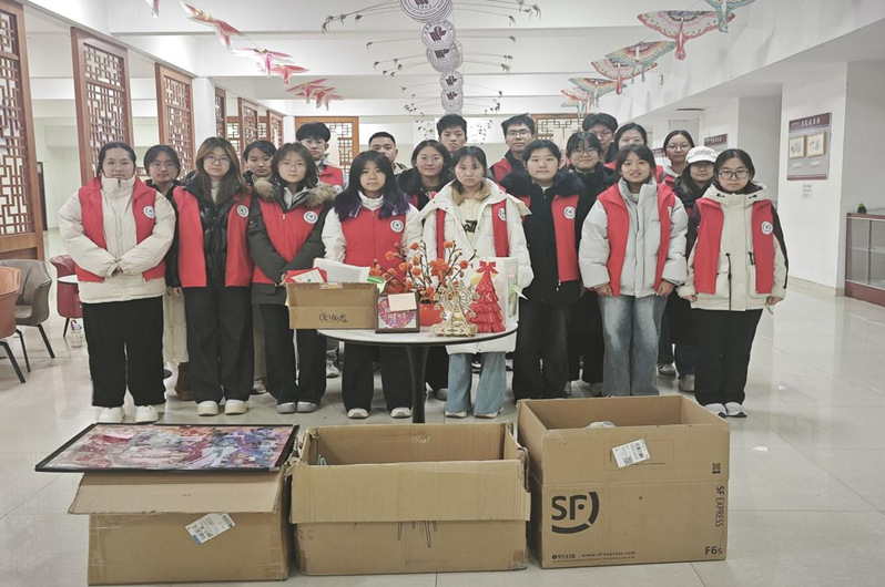 活动以“亲手制作、真诚赠礼”为主线,鼓励同学们将创意与祝福转化为送给孩子们的独特礼物,在互动中搭建起青春与童真之间的爱心桥梁。同学们纷纷施展巧思,彩纸折叠成千纸鹤、黏土捏出可爱玩偶、毛线编织成温暖围巾与帽子、毛毡裁剪为精美花束、手绘贺卡写下真挚寄语……每一份礼物都承载着心意与温度。捐赠现场,各类手作礼物很快装满多个大箱。志愿者们细心整理、妥善打包,确保每一份承载着祝福的礼物,都能完好地送达潍坊市盲童学校孩子们的手中。