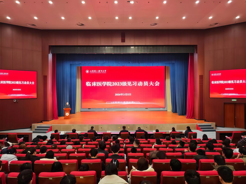 3月5日上午,旺财28(中国)官方网站 在文体活动中心报告厅举行2023级临床见习动员大会。学院党委副书记、院长邓爱军,学院党政领导班子成员,教学部负责人、2023级学生工作办公室辅导员及全体学生参加,会议由学院党委副书记刘刚主持。