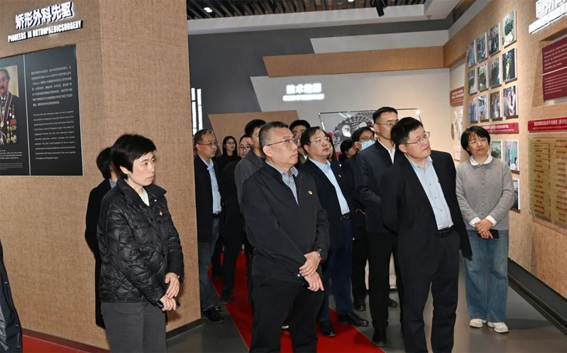 在校史馆,全体人员认真聆听讲解,详细了解学校的发展历程、办学成就,在学校获赠编号为2025-0166的天安门广场国旗前驻足瞻仰,深刻体会国旗承载的国家尊严与民族荣光,以及国旗与张军桥烈士英勇献身精神交相辉映的丰富内涵。在中国肢体畸形残障医学展览馆,大家循着展陈脉络,回顾以秦泗河教授为代表的医学前辈深耕医学领域、守护人民健康的奋斗历程,深切感悟“仁心妙术 佑民济世”的院训精神与大医精诚的医者担当。全体人员接受了一次全面的校史校情浸润、生动的爱国主义洗礼、厚重的医学人文熏陶和深刻的政绩观教育,进一步坚定了理想信念、厚植了家国情怀、砥砺了医者初心。